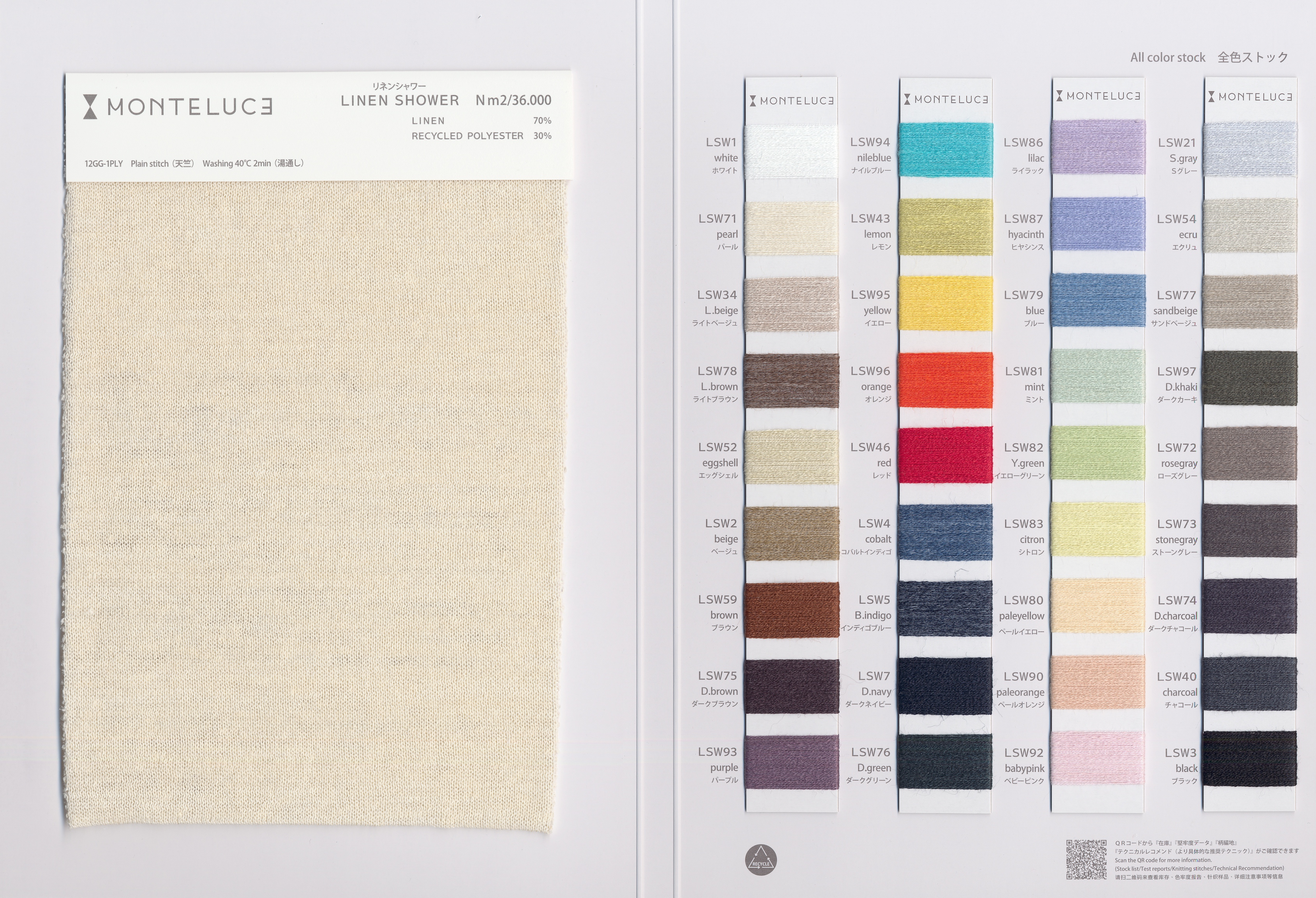 这是一款将上乘欧洲亚麻与再生聚酯混纺而成的环保型功能性纱线。